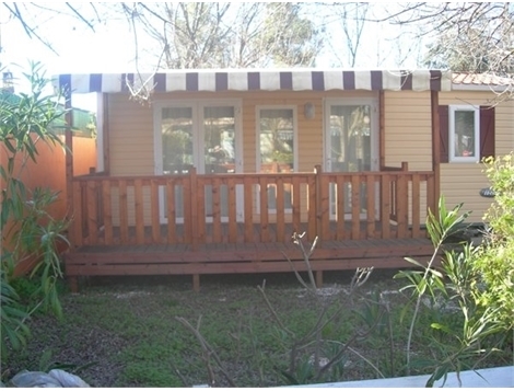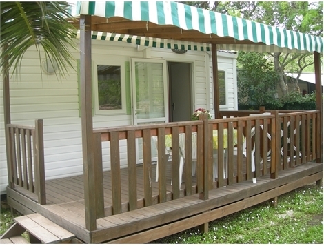 Tous les Mobil-homes sont équipés de vaisselle, d’un salon de jardin, et d’une terrasse en bois.