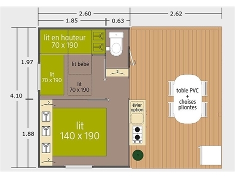 1 chambre avec 1 lit de 2 personnes 1.40x1.90