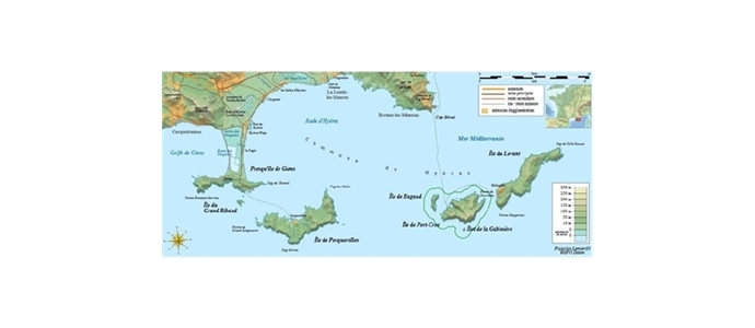 Porquerolles, la plus grande, possédant les plus belles plages, à découvrir à pieds ou à vélo.